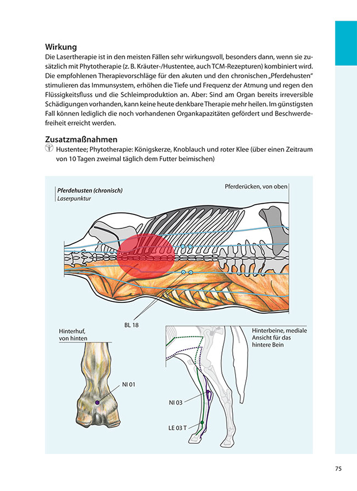 Lasertherapie und Akupunktur sind energetische Behandlungsmethoden, die sich gut ergänzen und heute auch in der Pferdetherapie erfolgreich eingesetzt werden. Dieses Anwenderbuch soll einen schnellen und praktischen Einstieg ermöglichen. Dazu orientiert es sich an den wichtigsten und für das westliche Verständnis bekannten Indikationen und stellt für diese effektive, direkt umsetzbare Kombinationstherapien mit Laser und Akupunktur vor.